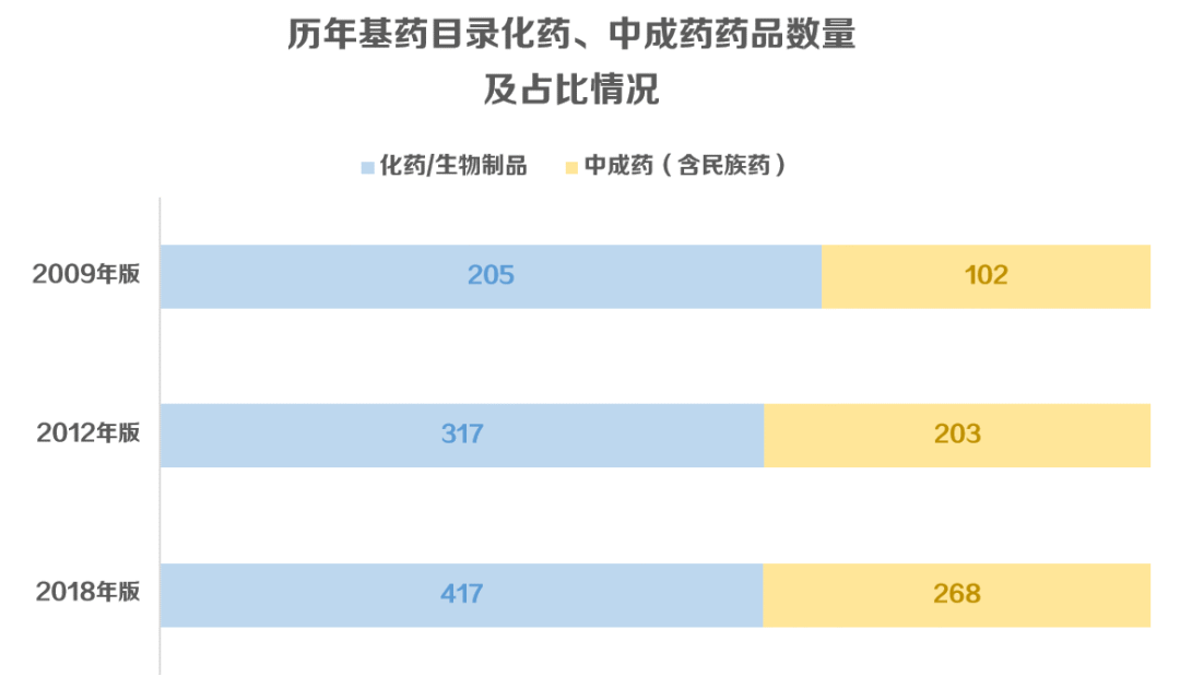 此外,今年3月国家卫健委在《对十三届全国人大五次会议第1996号建议的答复》中,再次提到“坚持中西药并重”的原则,历年三版基药目录中成药占比逐次从33%左右提升到39%,新版基药目录中成药占比或将在此基础上再次升高。