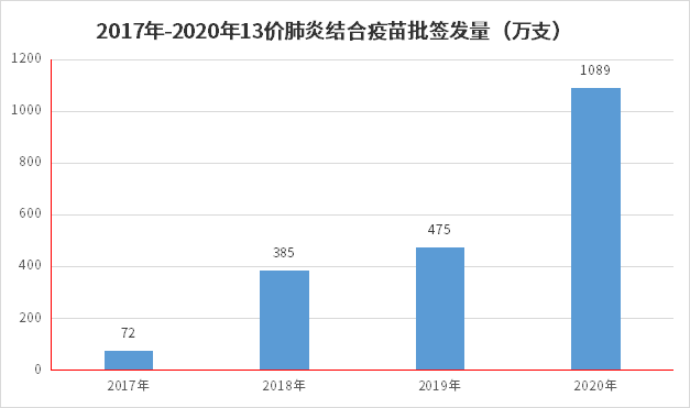不是不想接种,只因价格太贵。辉瑞的Prevnar13是2016年11月在国内获批上市,每剂价格高达700多元,接种成本达两千多元,虽属自费疫苗,但有经济能力或有强烈接种意愿的家长一拥而上,让Prevnar13在国内一经上市就快速放量,2017年批签发72万支,2018年增长434.72%达385万支,随着这部分群体完成接种,2019年增长势头就明显放缓,同比只有23.38%。