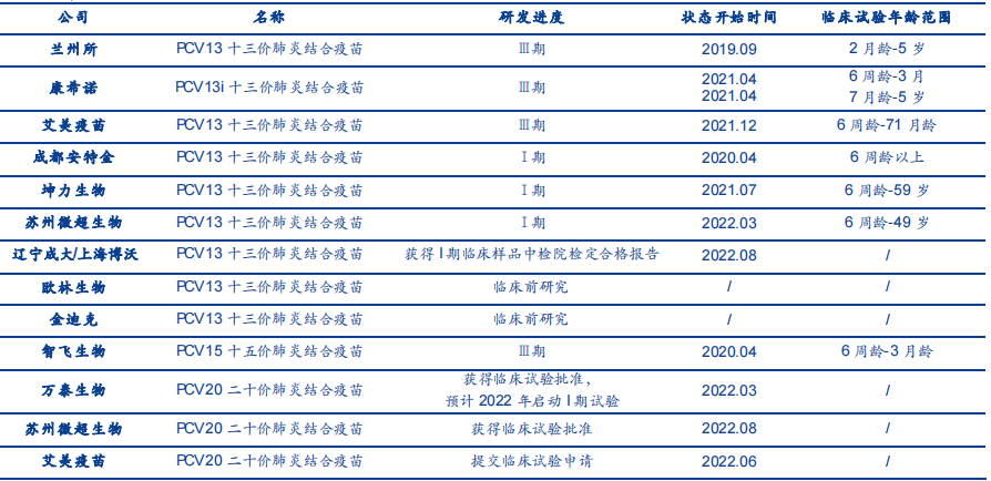 截至2022年8月,国产在研的PCV疫苗有13款,其中4款已进展至临床Ⅲ期,分别为兰州所、康希诺和艾美疫苗的13价疫苗,及智飞生物的15价疫苗,“集市”虽热闹,但“赶集人”并不太多。
