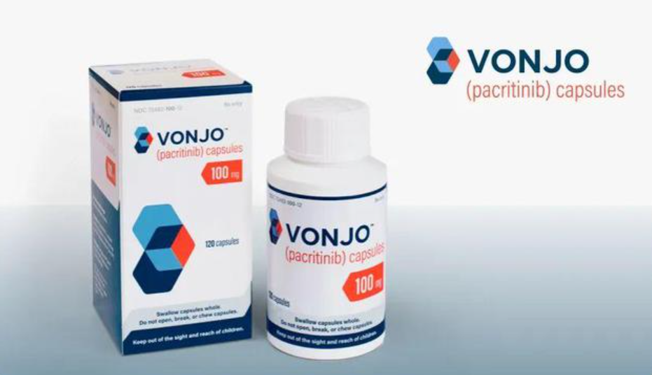 Vonjo(帕克替尼)是一种新型口服激酶抑制剂,能特异性抑制JAK2和IRAK1,该药在2022年2月底获FDA批准上市,用于治疗伴有严重血小板减少症的骨髓纤维化(MF)患者。