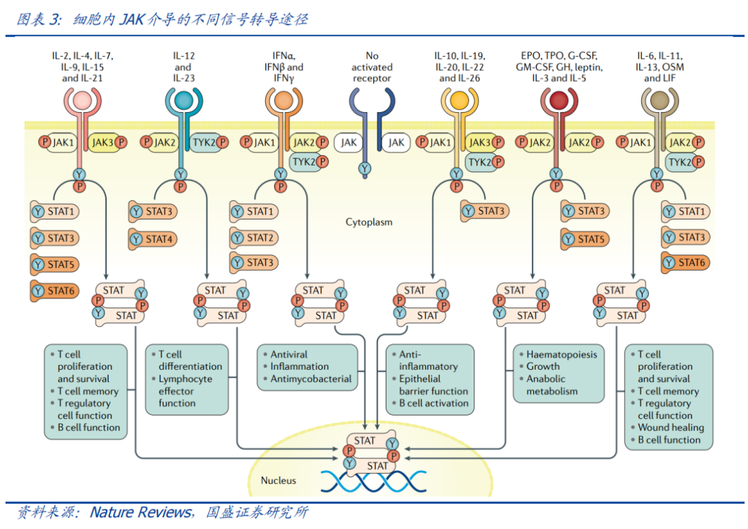 由于细胞因子及其受体种类非常繁多,而JAK可以介导约60种不同的细胞因子,以至于形成了不同的信号通路。