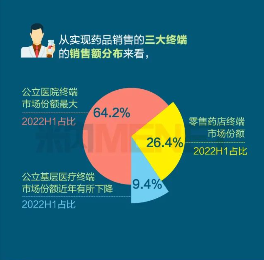 据米内网统计,2022年我国三大终端六大市场药品销售额达17936亿元,同比增长1.1%,其中零售药店终端市场份额占总市场份额的29.0%。