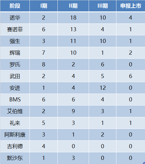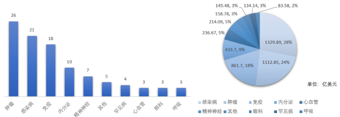 注:项目数量按适应症统计;来源:企业官网、医药魔方