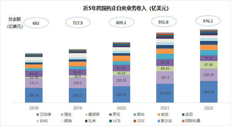 自身免疫性疾病与免疫系统紊乱和异常活跃有关,可导致免疫系统错误地攻击及损伤人体自身的组织或器官。据美国自身免疫相关疾病协会(AARDA)的统计,自身免疫疾病有100多种不同类型,可影响身体的几乎任何部位,例如皮肤、关节、肌肉、骨骼及消化系统等。这类疾病不仅会影响患者身体健康,还会影响患者的心理健康和生活质量。此外,由于大多自身免疫性疾病为慢性疾病,需要长期护理,因此也给患者和社会带来沉重的经济负担。需求中往往蕴含着市场和机会。如今,自免领域已成为重磅炸弹的密集诞生地,也成为各大制药巨头业绩贡献的主要来源。三款自免产品Humira(阿达木单抗)、Skyrizi(瑞莎珠单抗)和Rinvoq(乌帕替尼)撑起了艾伯维总收入半壁江山(49.8%),也使其稳坐自免业务收入TOP1宝座;强生制药业务收入中,免疫学产品(169.35亿美元)独占鳌头,甚至压胜肿瘤学产品收入;而赛诺菲则试图凭Dupixent(度普利尤单抗)打天下......