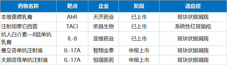 根据《中国银屑病诊疗指南(2018完整版)》,我国银屑病患病率约为0.5%。按全国总人数141178万计算,我国可能存在多达700余万例银屑病患者[1];据弗若斯特沙利文报告,中国的特应性皮炎患者总数已于2019年达到657万例,其中大多数为儿童及青少年[2]。《2020中国系统性红斑狼疮诊疗指南》数据显示,我国系统性红斑狼疮(SLE)的患病率为30~70/10万人,由此估算,中国SLE患者数量可能已有近100万人[3]。不过由于中国创新药研发起步较晚,尤其是生物药的开发存在一定的技术壁垒,导致长期以来中国临床上使用的自免药物仅局限于全身性免疫抑制剂(如甲氨蝶呤、硫唑嘌呤等、环孢素)、非甾体抗炎药(NSAIDs)和甾体抗炎药(SAIDs)这三类传统小分子药物。不过,这些传统的治疗方式难以取得良好稳定的疗效,我国近62%以上的患者对银屑病治疗结果不满意[4],超过75%的医生对特应性皮炎现有治疗方案不满意[5]。即使近些年随着药品审评审批加速,国外创新生物制剂和靶向药几乎能够与国内实现同步获批。但上市的自免新药仍大多来自外资企业而本土自研的创新药凤毛麟角。以银屑病治疗为例,截至目前国家药监局共批准了14款创新生物药,包括TNF-α抑制剂、IL-17抑制剂和IL-12/23类抗体药物,然而这些药物均来自外资药企。已上市/申报上市的本土自免创新药