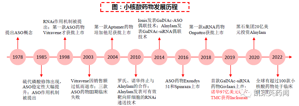 小核酸药物的发展并非一帆风顺,也曾因稳定性、安全性等问题一度被各大药厂停止开发。近年来随着相关技术的突破和相关药物的成功获批上市逐渐引起关注,行业发展开始加速。