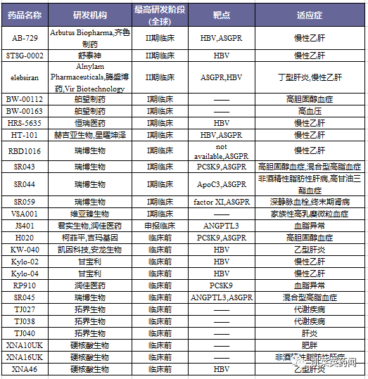 国内企业在心血管、肝、肾等代谢领域的siRNA布局