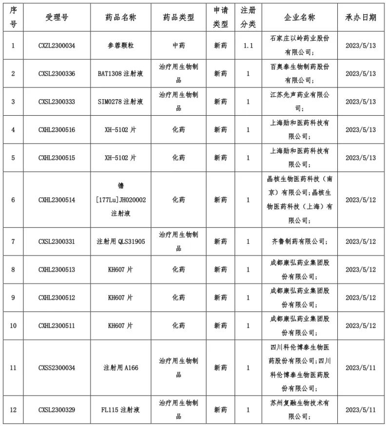 这些受理号分别来自34家企业,33种药品。其中,齐鲁制药(海南)有限公司的达沙替尼片有4个申请被受理。