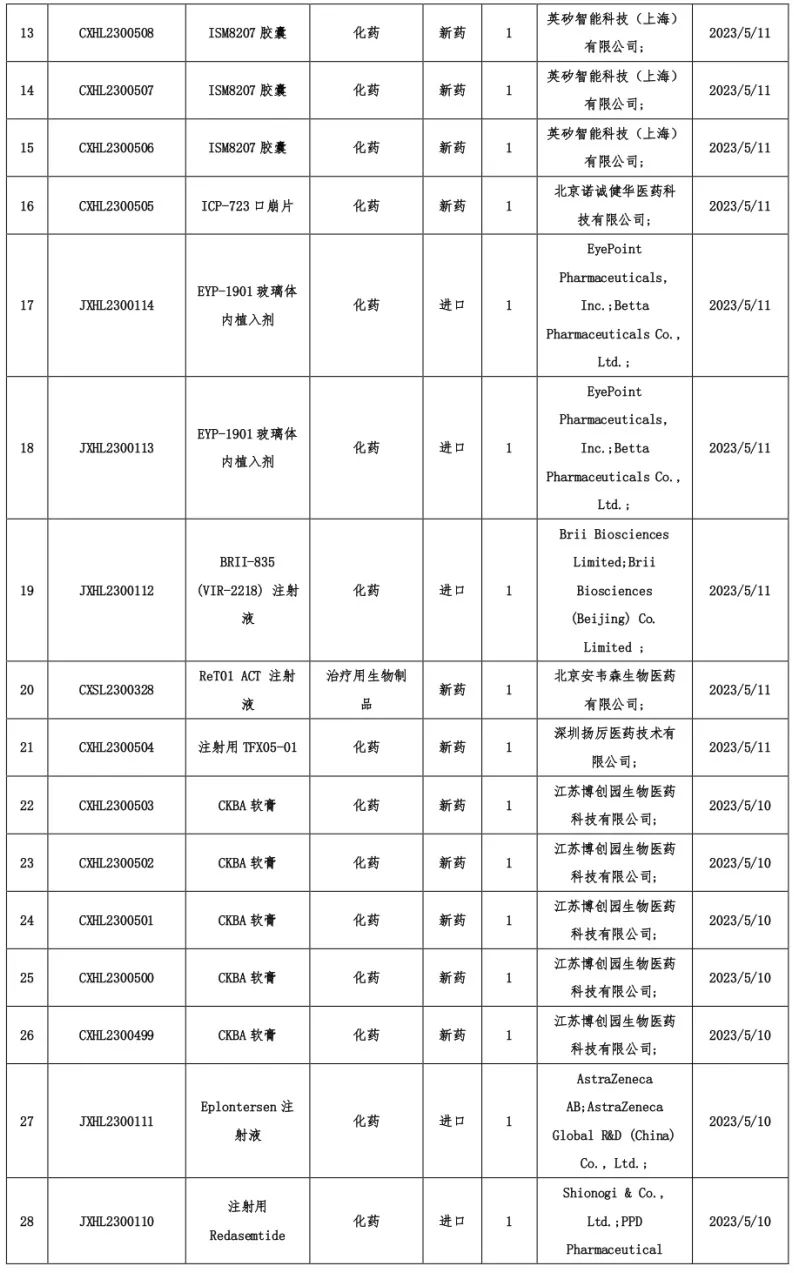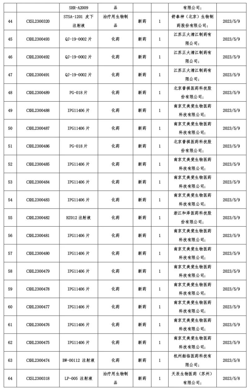 这些受理号分别来自32家企业,34种药品。其中,南京艾美斐生物医药科技有限公司的IPG11406片有12个申请被受理。