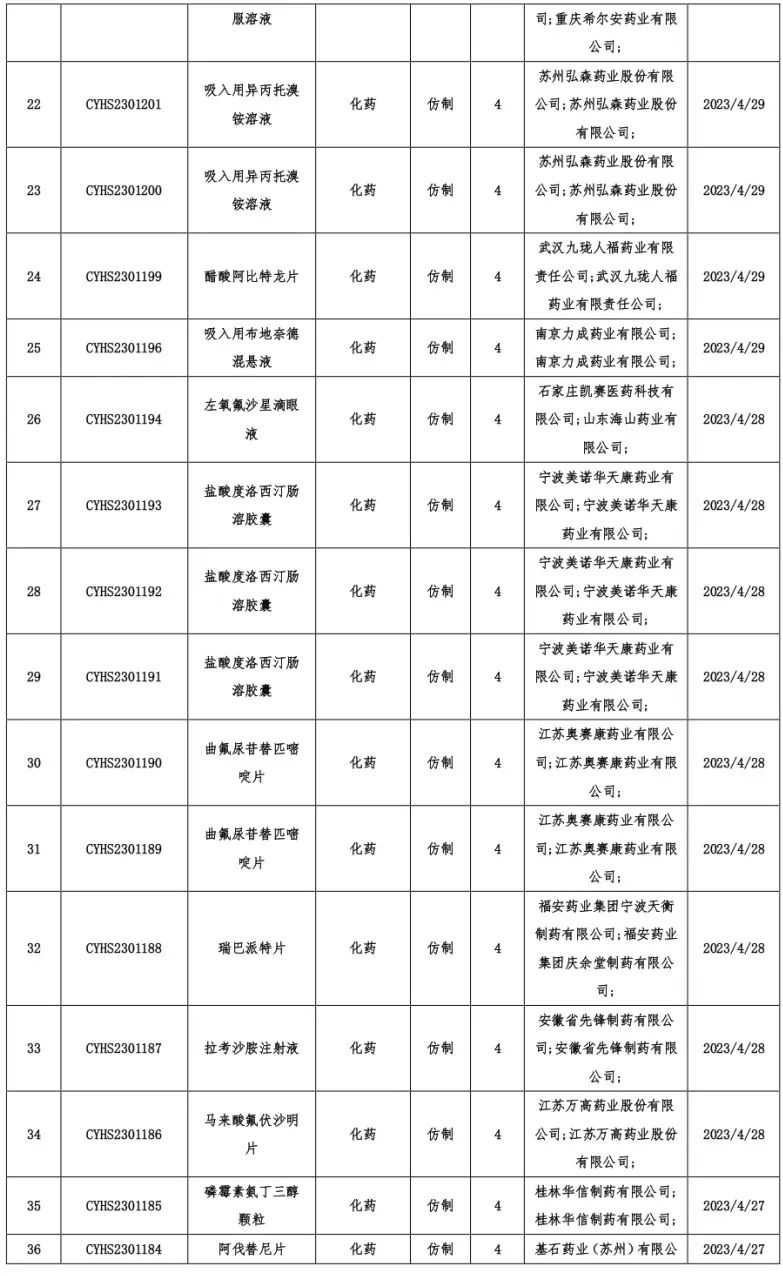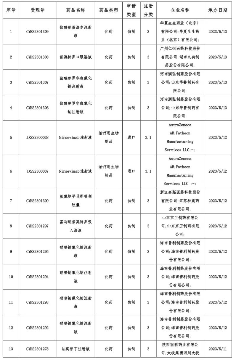 这些受理号分别来自25家企业,22种药品。其中,海南普利制药股份有限公司的硝普钠氯化钠注射液有4个申请被受理。