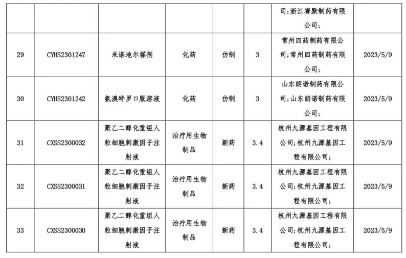 3类药品受理号共33个,其中化药27个,治疗用生物制品6个。分别为: