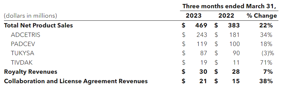 Adcetris 2023Q1大涨34%,贡献近50%业绩