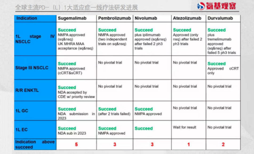目前,舒格利单抗在欧盟和英国的注册申请已经被受理。若进展顺利,舒格利单抗或将成为首个成功出海的PD-L1。