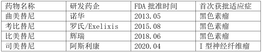 FDA已批准上市的MEK抑制剂(根据公开资料整理)