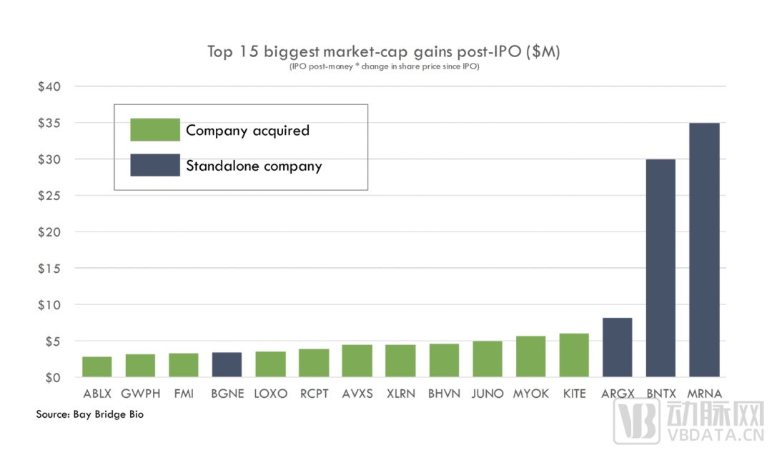 上述数据表明,公共股本投资者对产品的奖励超过了对平台的奖励。我们还看到,大多数公开市场的赢家公司都被收购了。那么大型制药公司重视什么?