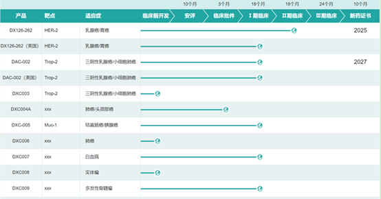 在毒素和ADC链接体中形成的体量优势,也让多禧生物产品布局更加得心应手。近10年来,多禧生物已经拥有了超过30款不同研发阶段的ADC药物,其中6款药物进入临床阶段。