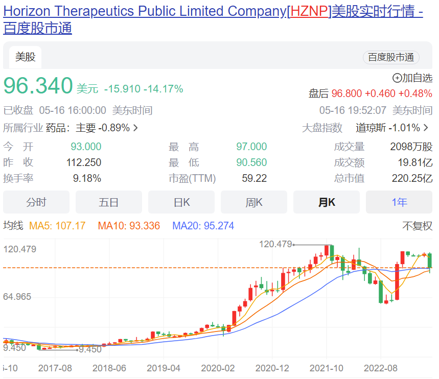 消息发出后,Horizon Therapeutics昨日股价大跌14%,目前市值为220亿美元。