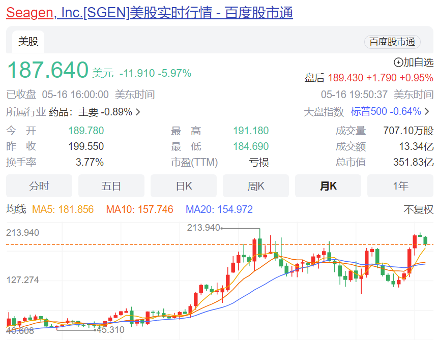 此次FTC提起诉讼意味着其对制药行业的很多大型并购交易可能都会采取类似的态度和做法。同样面临辉瑞430亿美元收购的Seagen,昨日股价也跌了6%。