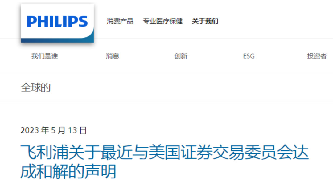 5月13日,飞利浦就此事发布声明,表示已与SEC达成和解,以解决之前披露的SEC关于2014年至2019年间中国医疗器械行业涉嫌投标违规的调查。美国司法部已经结束了对这些问题的平行调查。