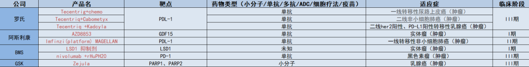 罗氏一共终止了3条单抗类药物管线,均为Tecentrig组合药物,分别为:用于一线转移性尿路上皮癌的Tecentrig+chemo、用于二线非小细胞肺癌的Tecentriq+Cabometyx、用于二线her2阳性、PD-L1阳性转移性乳腺癌的Tecentriq +Kadcyla。
