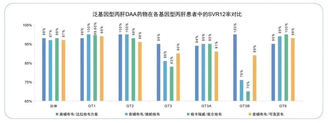 与国内目前已批准上市的三款泛基因型丙肝药物组合相比(索磷布韦/维帕他韦、格卡瑞韦/哌仑他韦和盐酸可洛派韦/索磷布韦),圣和药业自主研发的奥磷布韦片/达拉他韦片联用方案在 GT3 型丙肝患者(特别是 GT3b 型丙肝患者)中表现出了更优秀的病毒学应答率。