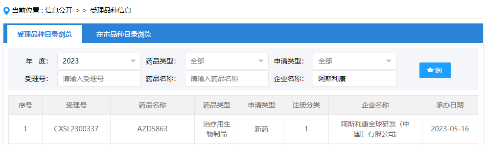 5 月 16 日,CDE 官网显示,阿斯利康的 AZD5863 首次申报临床。