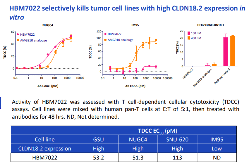 临床前数据已经表现出对 CLDN18.2 高表达的肿瘤细胞系的高度杀伤作用。