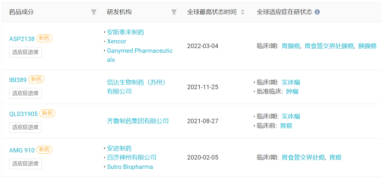 据 Insight 数据库显示,当前全球共有 14 个 CD3/CLDN18.2 双抗在开发,其中最快的 4 个项目处于 I 期临床阶段,分别来自安斯泰来(ASP2138)、信达生物(IBI389)、齐鲁制药(QLS31905)和安进/百济神州(AMG910);AZD5863 / HBM7022 如今也申报临床。可以看出,在第一梯队里中国企业身影频现。