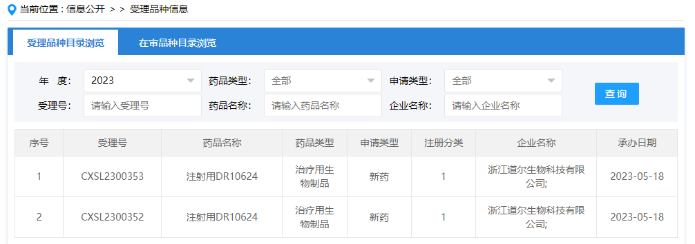 5 月 18 日,CDE 官网显示,华东医药控股子公司道尔生物「注射用 DR10624」首次在国内申报临床并获得受理。Insight 数据库显示,此前在 22 年 4 月其 IND 申请在新西兰获批,并在同年 6 月启动了 I 期临床试验。