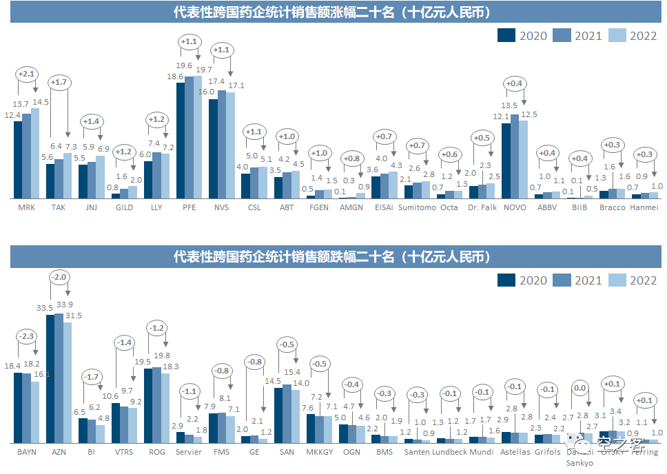 看跨国药企这边明显波动幅度比中国药企更小,特别是考虑到近几批集采众多跨国药企都已经大范围采取弃标策略的情况下,其销售额基本盘相对稳定,也从侧面反映出创新能力和原研品牌的价值。