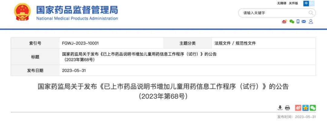 为完善已上市药品说明书儿童用药信息,提升儿童安全用药水平,国家药品监督管理局组织制定了《已上市药品说明书增加儿童用药信息工作程序(试行)》,现予发布。