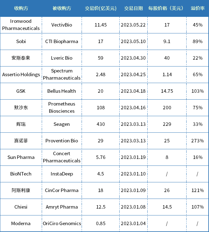 近日,知名行业媒体网站BioPharma Dive 盘点了2023开年以来发生的大体量并购交易案。辉瑞、默沙东、赛诺菲等熟悉的MNC均在名单之上。