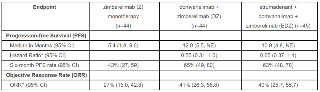 结果显示,在接受三免联用治疗的患者里,总体缓解率(ORR)达到了20%,对于有响应的患者,疾病控制率为45%。