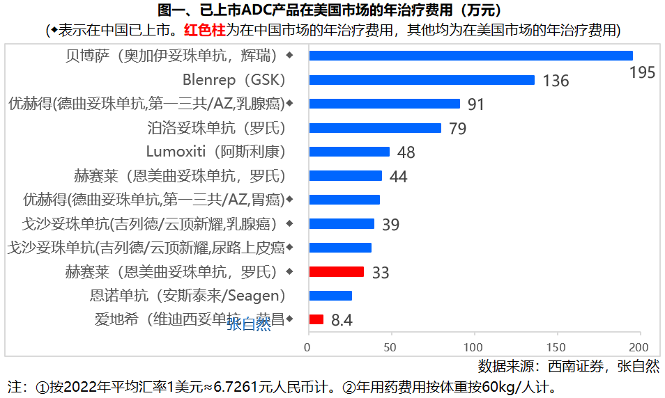 最贵的年治疗费用近200万元,2022年全球ADC销售超过500亿元。