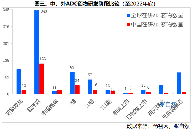 目前,全球有428种ADC药物正在研发中(Pharmaprojects数据),进入临床阶段的超过200个。其中,国内170余个ADC在研药物,进入临床阶段的近60个。