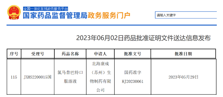 [1]2023年06月02日药品批准证明文件送达信息发布 . Rtrieved June 02, 2023, from https://www.nmpa.gov.cn/zwfw/sdxx/sdxxyp/yppjfb/20230602082946125.html