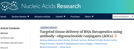 2023年6月2日/医麦客新闻 eMedClub News/--近日,Avidity Biosciences的科研人员在Nucleic Acids Research上发表文章“Targeted tissue delivery of RNA therapeutics using antibody–oligonucleotide conjugates(AOCs)”。文中展示了抗体-寡核苷酸偶联物(AOCs)在肝脏、非肝(肌肉、心脏)组织中的递送,证明了AOC具有良好的靶向性以及目的mRNA下调的功能性。