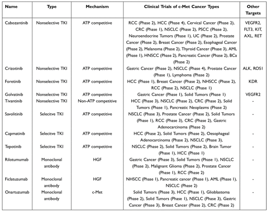 c-Met酪氨酸激酶抑制剂(TKIs)