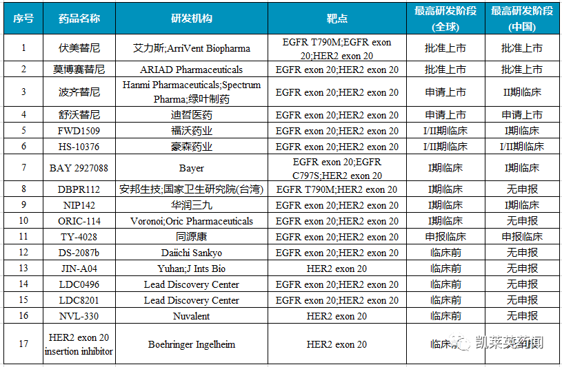 据不完全统计,目前在研针对HER2 Ex20ins在研的药物不足20种,其中多数是针对EGFR/HER2 Ex20ins设计。
