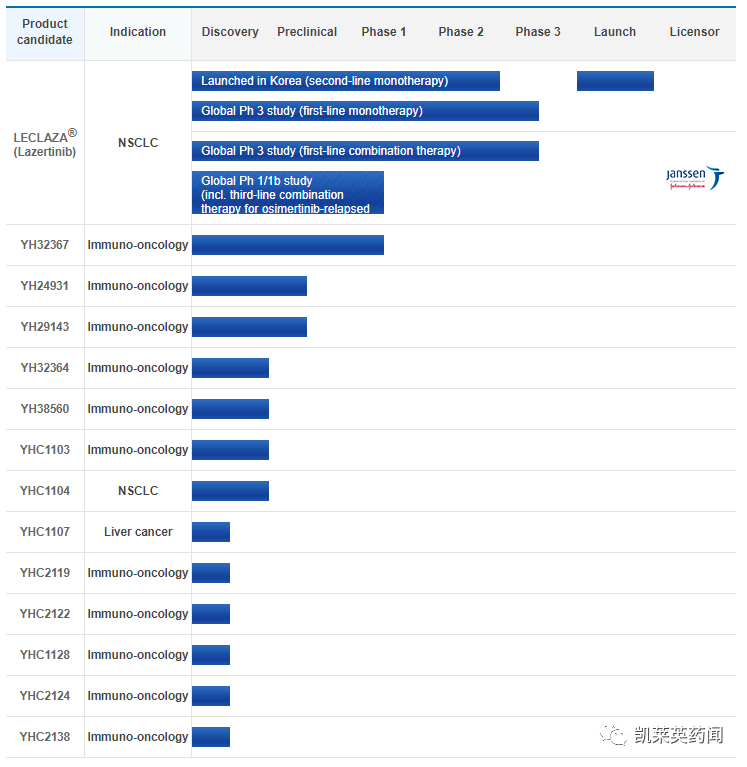 Yuhan代表方表示,“通过此次合同,追加了抗癌药物的管线,在开发第2、3期LECLAZA(lazertinib)试验方面又向前迈进了一步”。