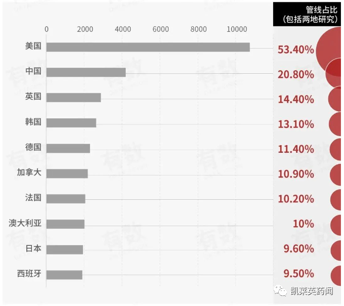 韩国研发管线占比仅低于美、中、英(Pharmaprojects、有数Data Vision)