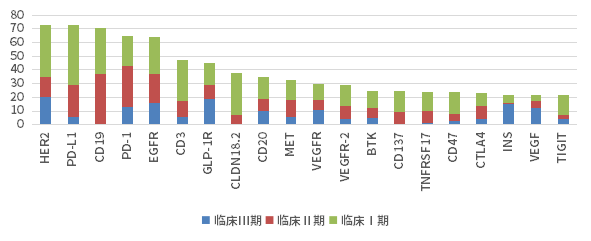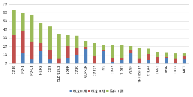 图9 国内1类生物新药临床在研靶点TOP20 数据来源:药智数据,药智咨询整理