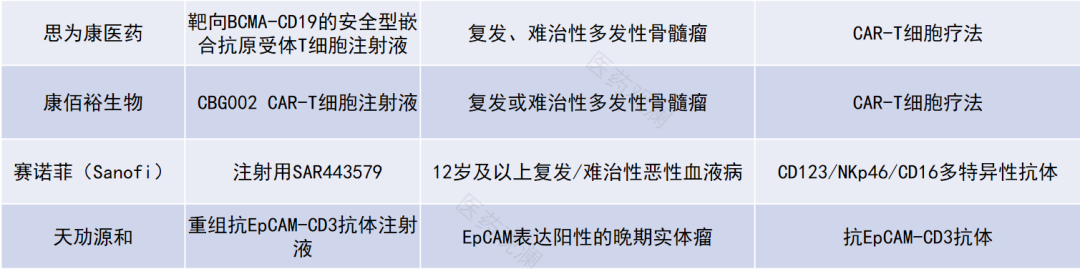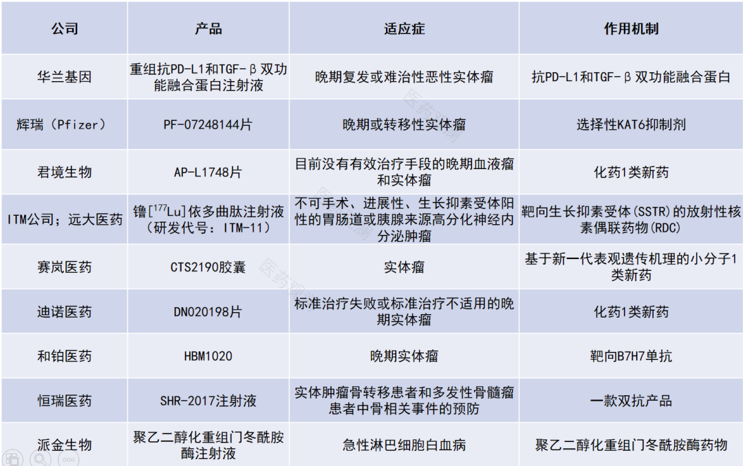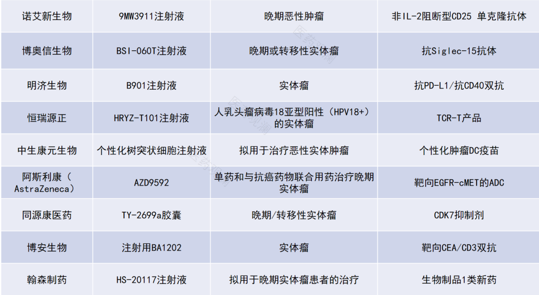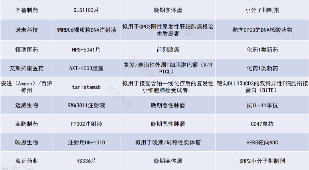 表:5月在中国首次获批临床的抗肿瘤1类新药