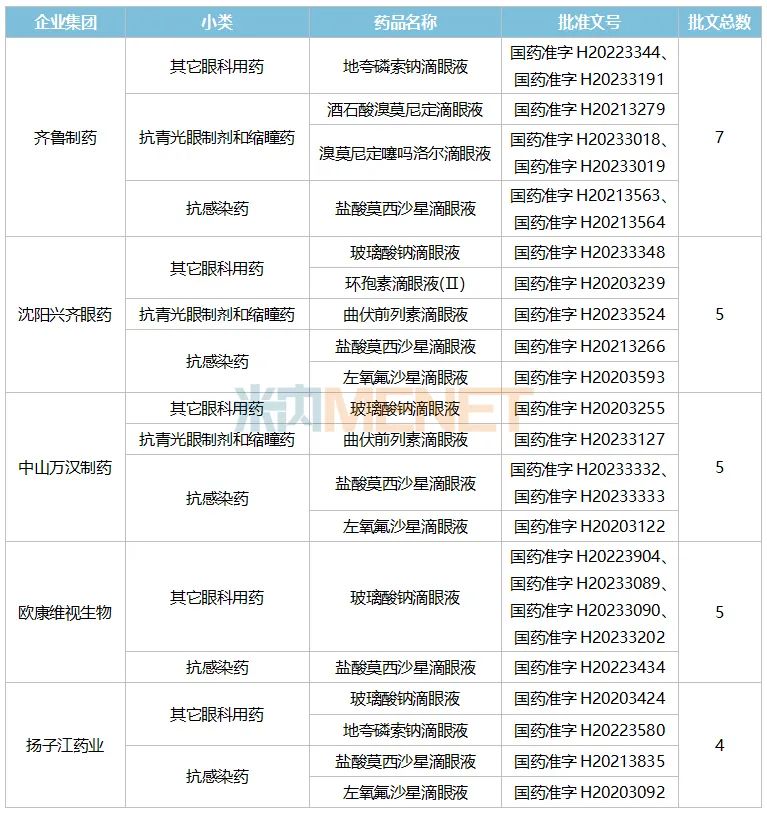 表1:2020年至今获批的国产眼科用药批文数≥4个的企业集团