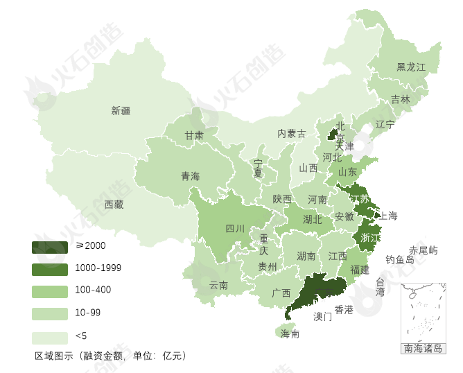 图2 截至2022年12月31日中国医药健康领域融资金额分布图 来源:火石创造产业数据中心