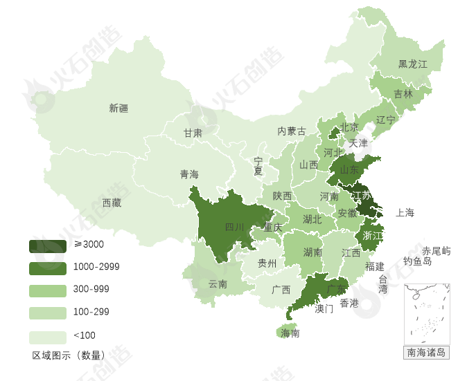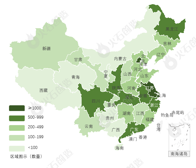 图4:截至2022年12月31日我国上市二、三类医疗器械数量分布图 来源:火石创造产业数据中心