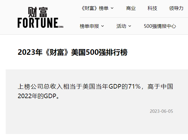 近日,财富中文网与英文网全球同步发布2023年《财富》美国500强排行榜。