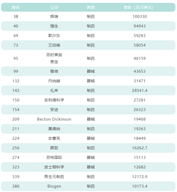 经整理,有以下18家药械企业上榜2023年《财富》美国500强排行榜: