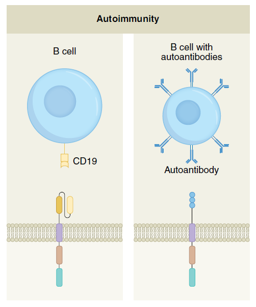 很多自身免疫性疾病产生的原因是由于免疫系统的功能失常,导致生产抗体的B细胞产生攻击自身健康组织的自身抗体。这些自身抗体激发人体的免疫系统攻击健康组织,造成持续的组织损伤。CAR-T疗法已经在治疗B细胞血液癌症中证明了它们有完全清除B细胞的能力。这一能力让科学家们想到,如果用CAR-T细胞清除生产自身抗体的B细胞,是不是就可以治疗自身免疫性疾病的根源?