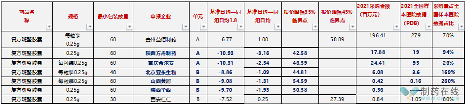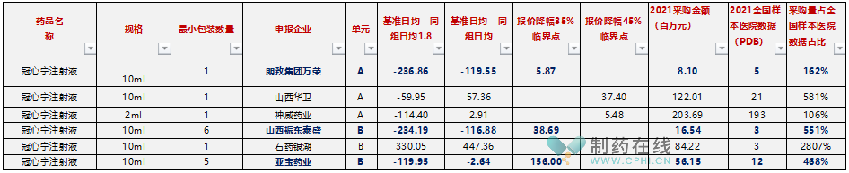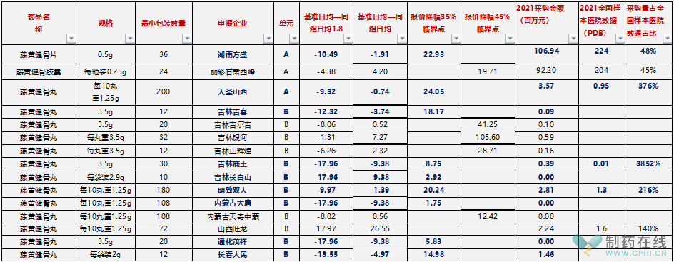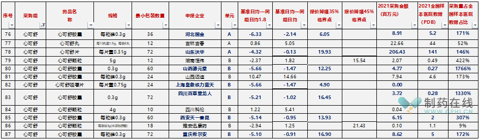这个组的规格很有意思,五个代表品五个规格。总体来看,众生的压力有点大,PDB样本医院3个多亿的盘子,势必被虎视眈眈。但众生如果不能直接中选,根据规则,众生基本上符合技术标无扣分、医药机构填报2021年该企业产品服用总天数达到同采购组所有企业产品服用总天数70%的条件,只需要报价日均费用不超过5元并接受A组入围企业排名前70%即可,仍然还有退路与余地。